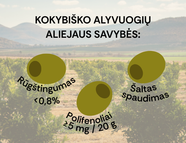 Svarbu atkreipti dėmesį į ekologiškumo sertifikatą, kuris parodo, kad alyvuogių aliejus bus be pesticidų ir kitų medžiagų.