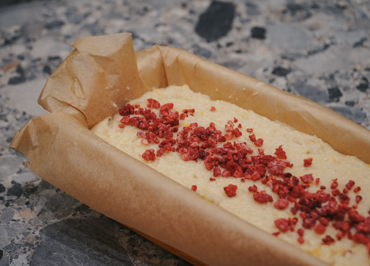 - 4. Supilk tešlą į kepimo popieriumi išklotą pyrago formą, tolygiai paskleisk (jei norisi, galima pagardinti liofilizuotomis uogomis ar kokoso drožlėmis) ir kepk 175 laipsnių įkaitintoje orkaitėje vieną valandą. Prieš išimant iš orkaitės įsmeik medinį pagaliuką – jei ištraukus šis bus švarus, pyragas iškepęs! O jei pagaliukas bus aplipęs drėgnais gumulėliais, pakepk dar šiek tiek igliau.