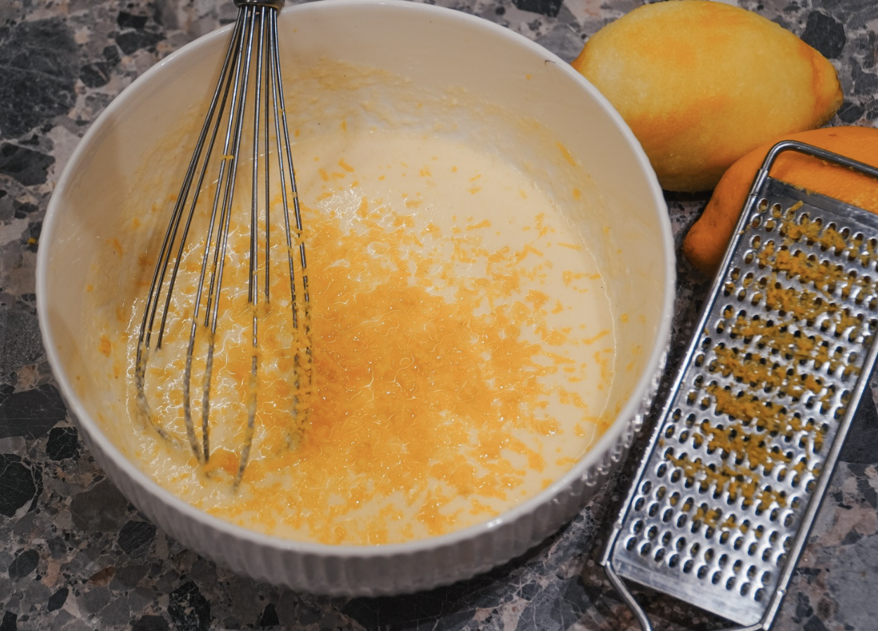 - 2. Įtarkuok citrinų žievelę ir įspausk citirnų sultis.