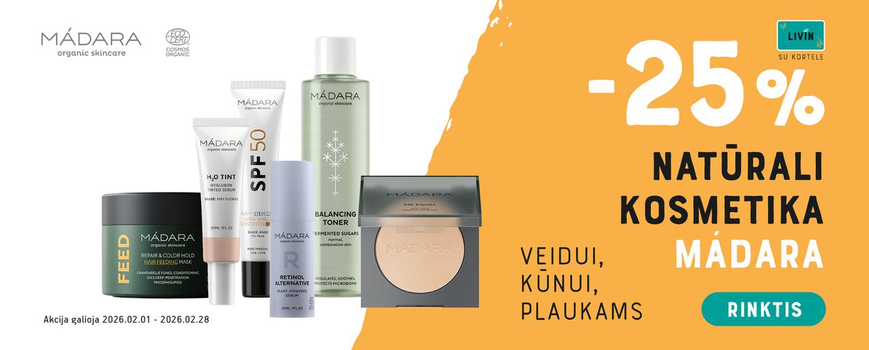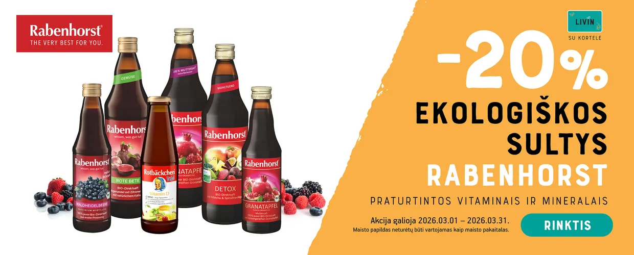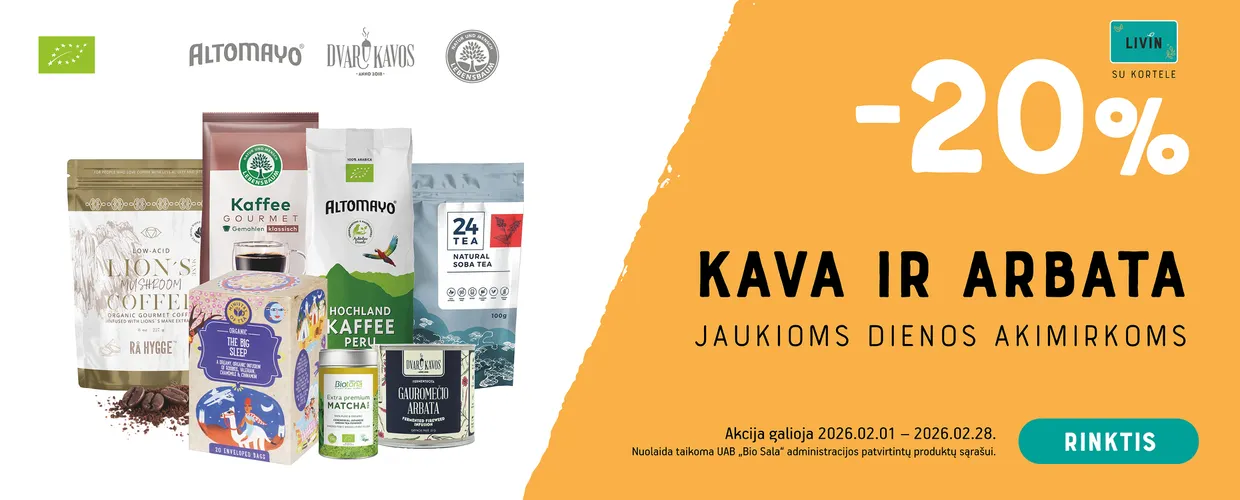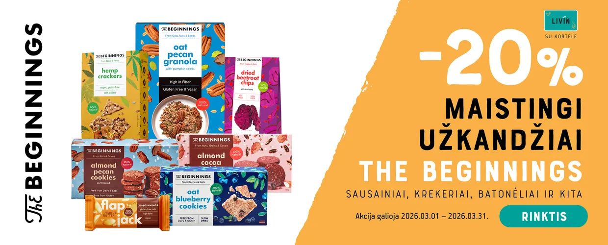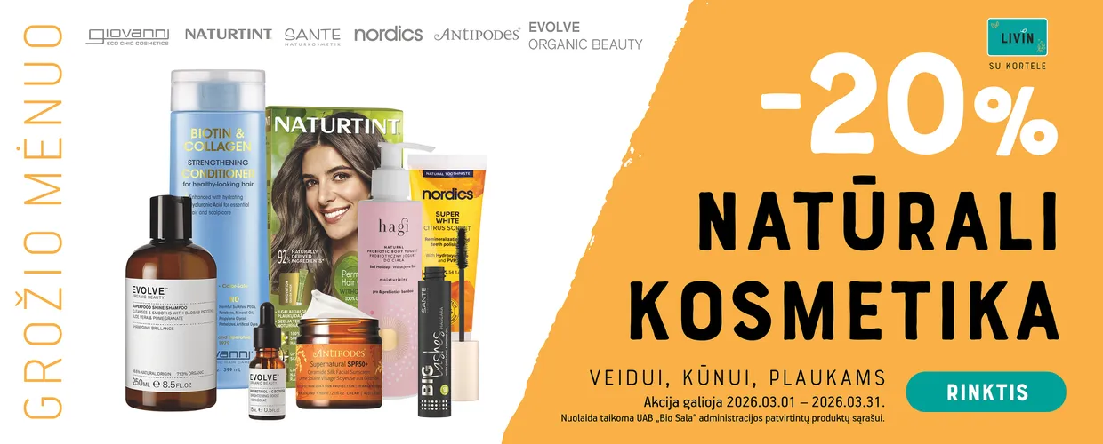 LIVIN internetinė parduotuvė - viskas, ko reikia sveikesniam gyvenimo būdui, vienoje vietoje. Mūsų platų maisto, grožio ir namų apyvokos produktų asortimentą sudaro sveikas ekologiškas maistas visai šeimai, ekologiškos skalbimo priemonės, padedančios rūpintis mus supančia aplinka ir natūrali kosmetika kūnui, veidui ir plaukams. LIVIN internetinėje parduotuvėje taip pat rasi sveikatai ir gerai savijautai skirtų produktų, pavyzdžiui, ekologiškų maisto papildų. Rūpinkis savo ir savo šeimos gerove kasdien - rinkis sveikatai bei aplinkai palankius produktus iš didžiausios internetinės ekologiškų prekių parduotuvės LIVIN!