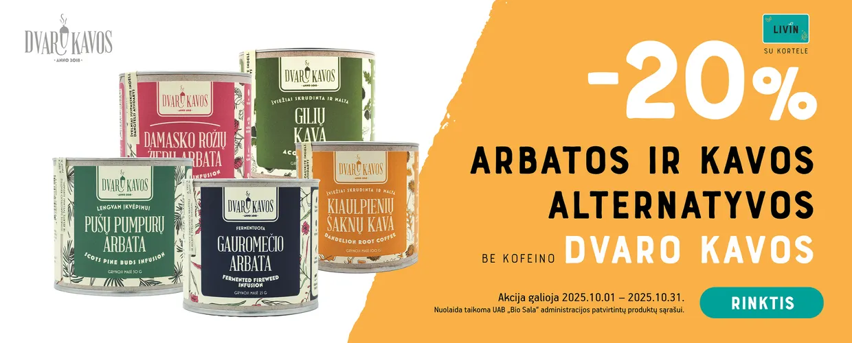 LIVIN internetinė parduotuvė - viskas, ko reikia sveikesniam gyvenimo būdui, vienoje vietoje. Mūsų platų maisto, grožio ir namų apyvokos produktų asortimentą sudaro sveikas ekologiškas maistas visai šeimai, ekologiškos skalbimo priemonės, padedančios rūpintis mus supančia aplinka ir natūrali kosmetika kūnui, veidui ir plaukams. LIVIN internetinėje parduotuvėje taip pat rasi sveikatai ir gerai savijautai skirtų produktų, pavyzdžiui, ekologiškų maisto papildų. Rūpinkis savo ir savo šeimos gerove kasdien - rinkis sveikatai bei aplinkai palankius produktus iš didžiausios internetinės ekologiškų prekių parduotuvės LIVIN!