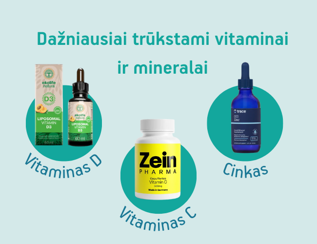 Normaliam organizmo funkcionavimui reikalingi visi vitaminai ir mineralai. Visgi tarp dažniausiai mums trūkstamų yra vitaminas D, vitaminas C ir cinkas. Žinoma, imunitetui labai svarbūs A ir B grupės vitaminas, selenas, geležis, riebiosios rūgštys. Idealiame pasaulyje visas šias medžiagas įmanoma gauti tik iš maisto, tačiau šiuolaikiniame pasaulyje tai padaryti labai sudėtinga.