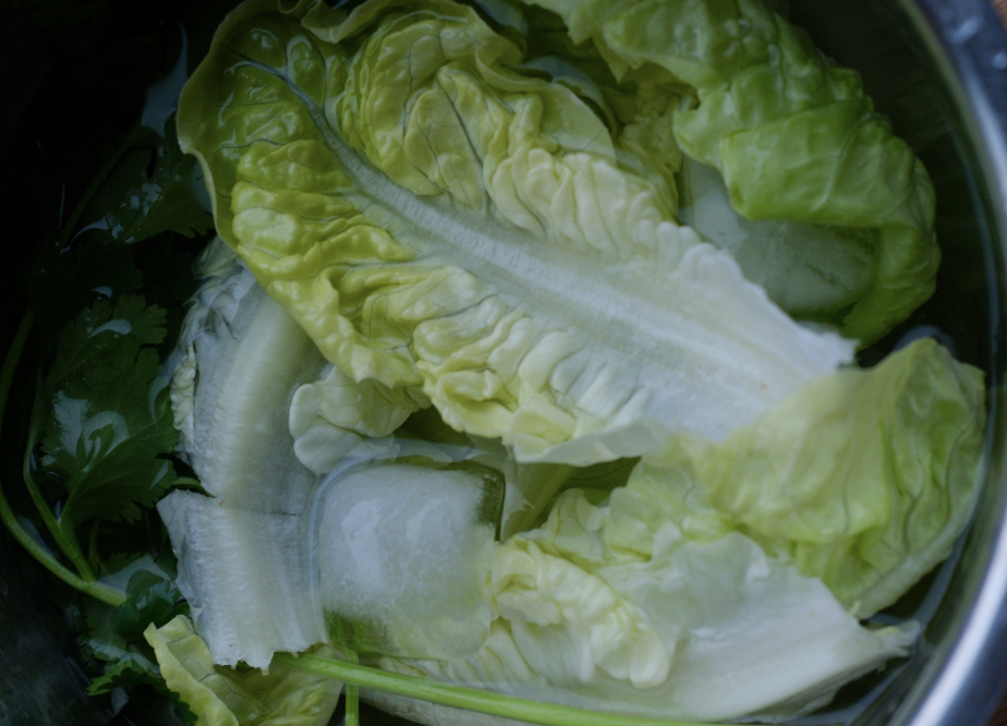 - 1. Pradedame nuo salotų: prisiplėšome jų pagal tai, kiek bus valgančiųjų, ir pamerkiame į šaltą vandenį – taip jos bus ne tik švarios, bet ir labai traškios.